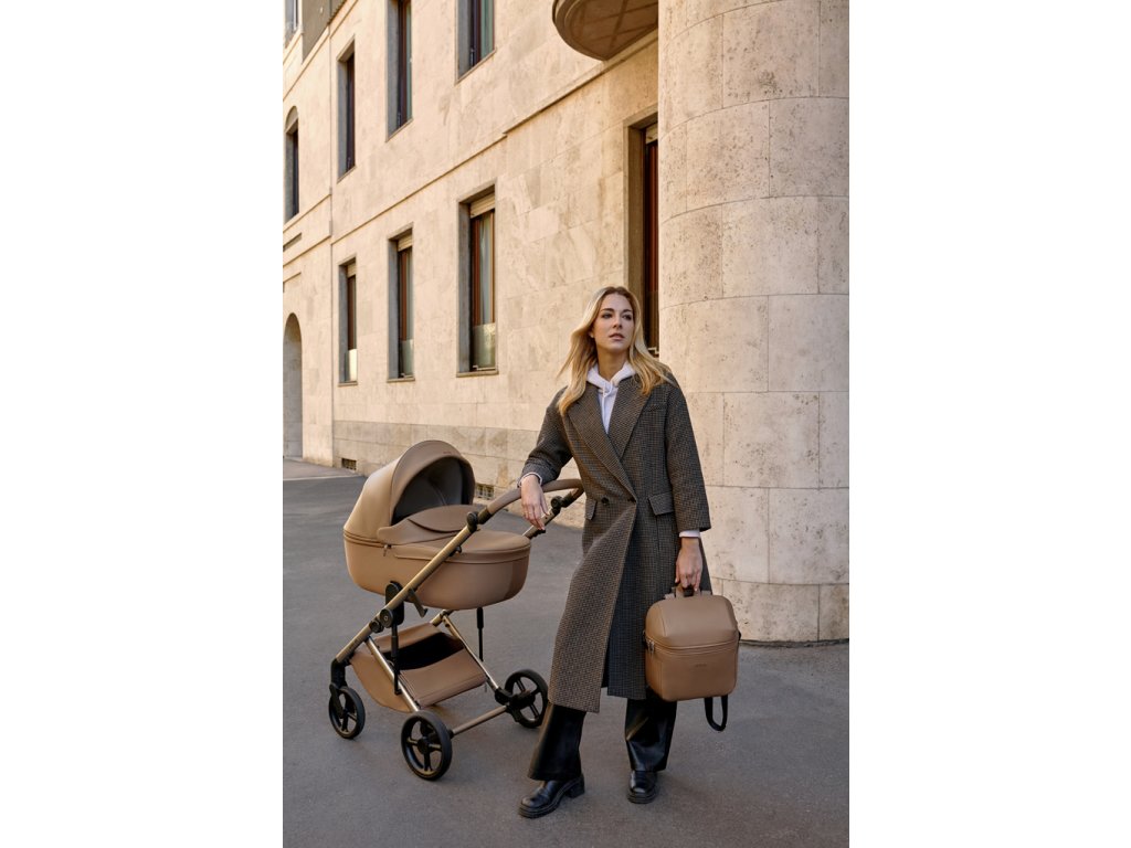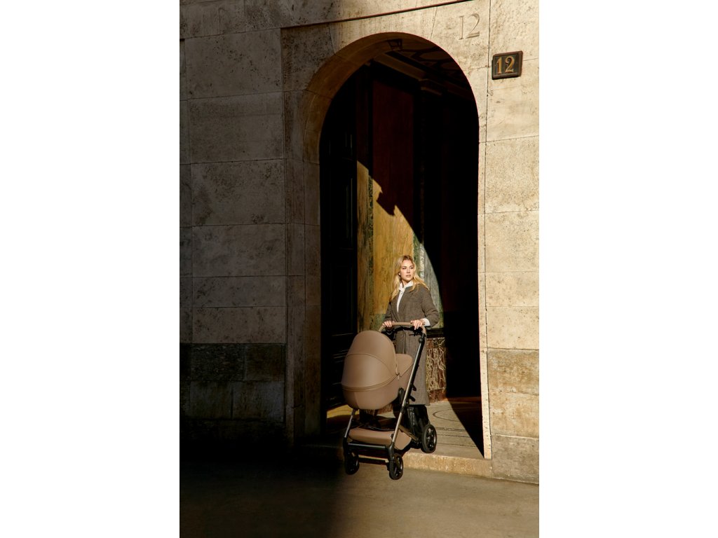 Anex Eli je vytvorený s ohľadom na ergonómiu, aby zabezpečil rodičom nekompromisný zážitok z dizajnu a funkčnosti. S ekokožou pôsobí kočík prirodzene a úžasne elegantne. Malé, ale pevné kolesá zaisťujú plynulý pohyb po meste, zatiaľ čo kompaktná a praktická taška obsahuje všetky potrebné veci pre rodičov a deti pri cestovaní.