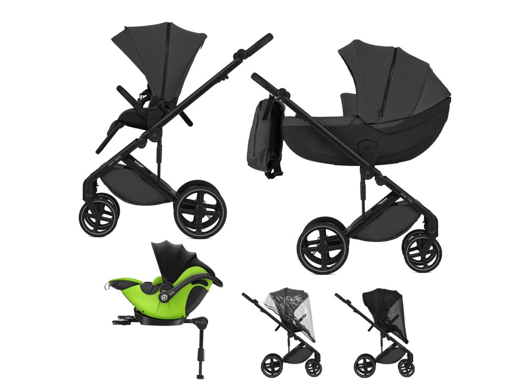 Obsahuje: vaničku, športovú časť, zvyšovacie adaptéry, elegantný batoh, pláštenku, moskytiéru, madlo. Súčasťou kočíka je tiež autosedačka Kiddy Evoluna i-size 2 spolu s isofix základňou.