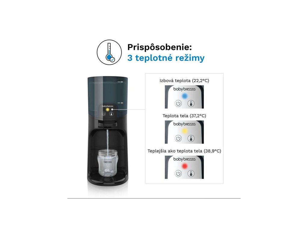 nstant Warmer od Baby Brezza je inovatívny ohrievač vody, ktorý umožňuje pripraviť fľašu formuly okamžite – stačí len stlačiť páčku, pridať formulu a máte pripravené kŕmenie za sekundy. Tri nastaviteľné teploty (22 °C / 37 °C / 40 °C), objem 1,5 l, kompatibilný so všetkými značkami fliaš, bez BPA.