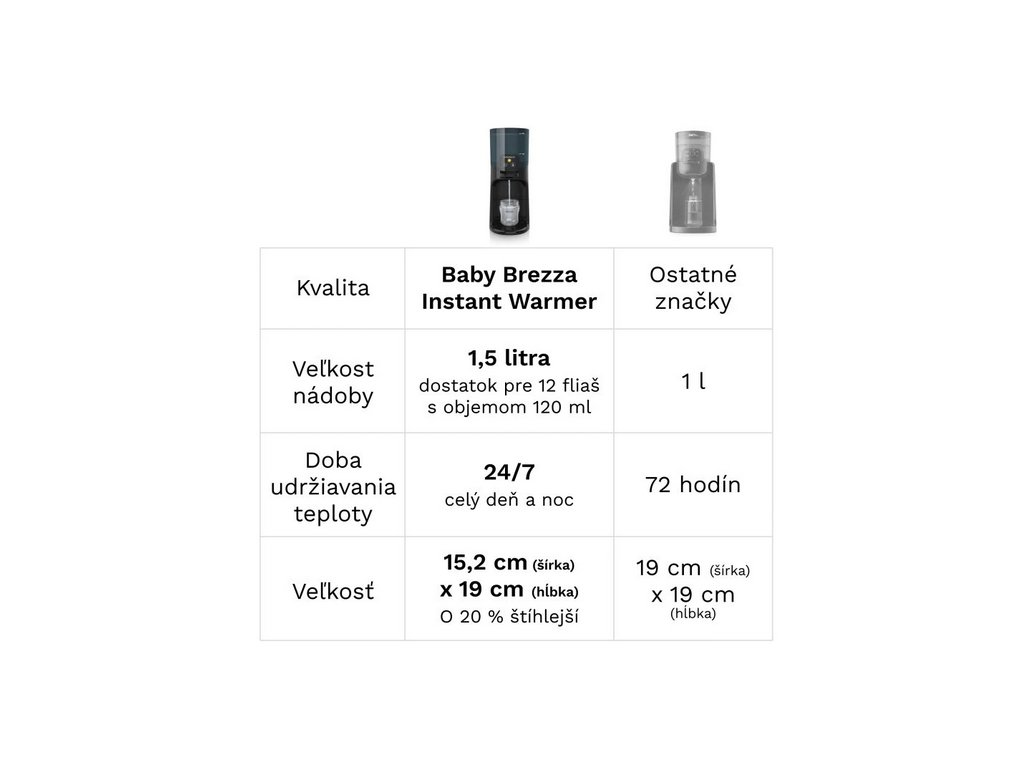 Pre rodičov to znamená menej času stráveného pri príprave, menej vyrušení počas kŕmenia a viac pokoja – ideálne zvlášť pre nočné kŕmenia alebo keď je treba rýchlo reagovať. Baby Brezza Instant Warmer je spoľahlivý, jednoduchý a premyslený pomocník do rodičovskej výbavy.