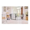 CombiFit XL je navrhnutý s ohľadom na flexibilitu. Zábranu je možné nastaviť do rôznych uhlov, aby sa prispôsobila tvaru miestnosti – či už chcete tvar polmesiaca alebo mierne zakrivenú konštrukciu. Máte voľnosť v umiestnení jednotlivých dielov tak, aby čo najlepšie vyhovovali vášmu priestoru. Zábranou môžete ľahko prejsť pomocou širokých dverí, ktoré je možné otvoriť z oboch strán jednou rukou – užitočná funkcia v uponáhľanom živote. Vďaka svojmu flexibilnému dizajnu a robustnej konštrukcii je BabyDan CombiFit XL spoľahlivým riešením na vytvorenie bezpečného prostredia vo väčších priestoroch. Možno neobmedzene predlžovať pomocou ľubovoľného počtu predĺžení (33 alebo 72 cm predĺženie sa predávajú zvlášť)