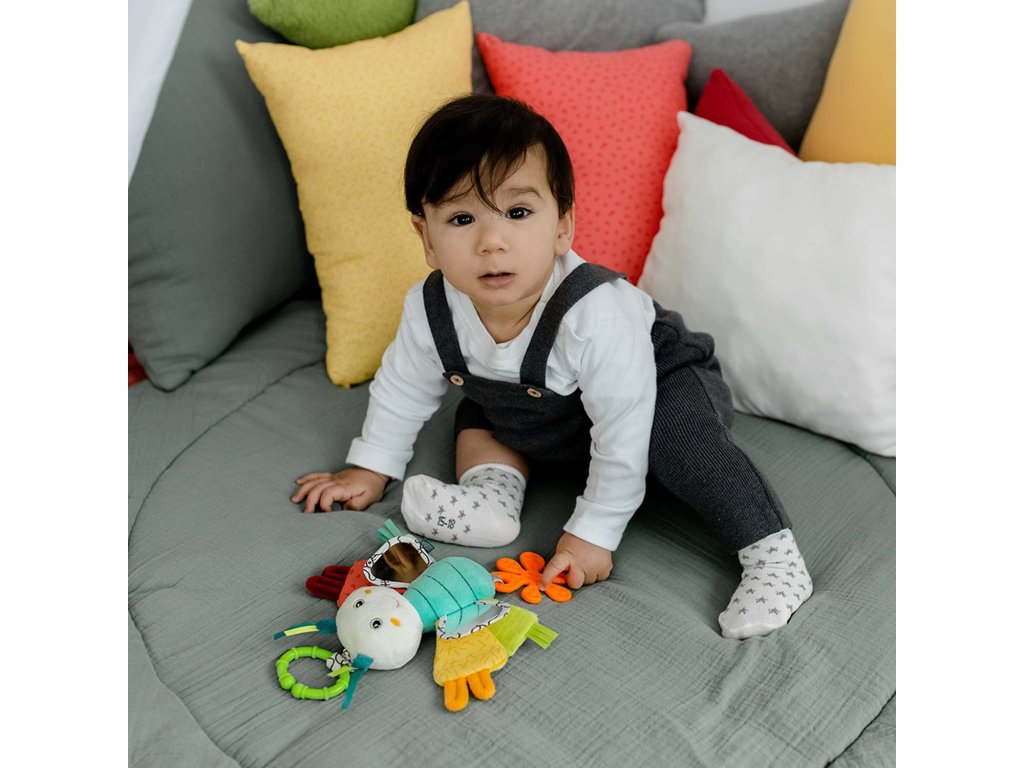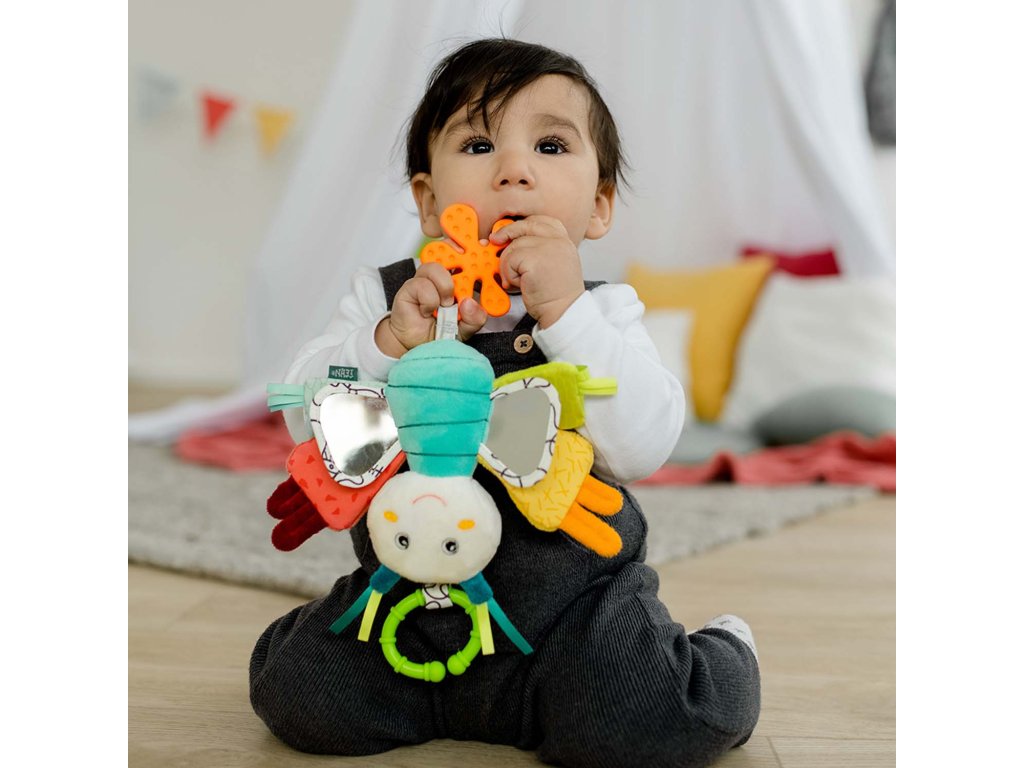 Hračku je možné pomocou praktického C-krúžku pripevniť na kočík, detskú autosedačku alebo postieľku.