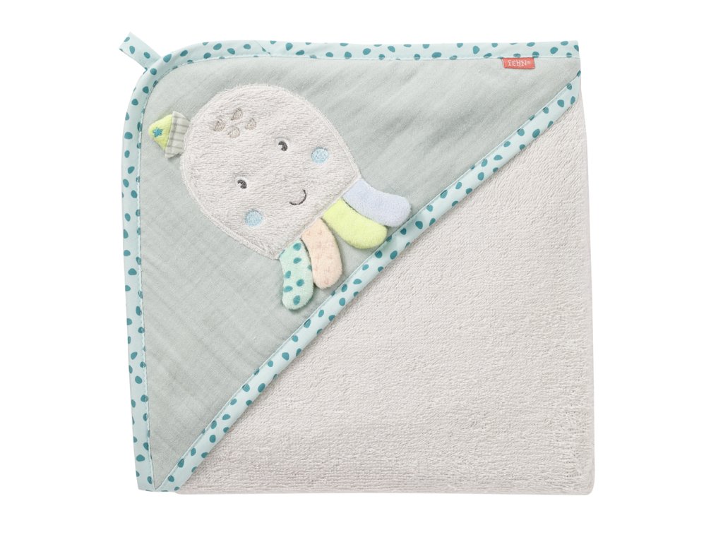 Deti sa môžu bezpečne schúliť do uteráka - roztomilá kapucňa s chobotnicou udrží ich hlavy v teple. Ani každodenné používanie a časté pranie nepoškodí plyšového morského tvora ani mäkké kúpacie pončo.