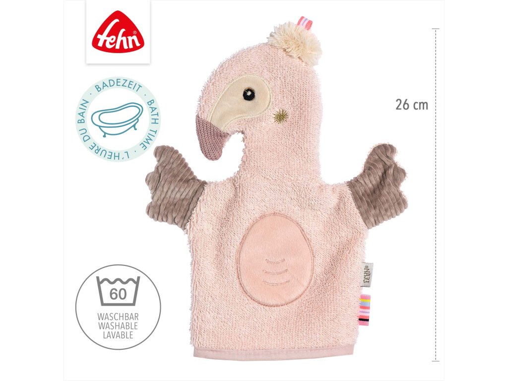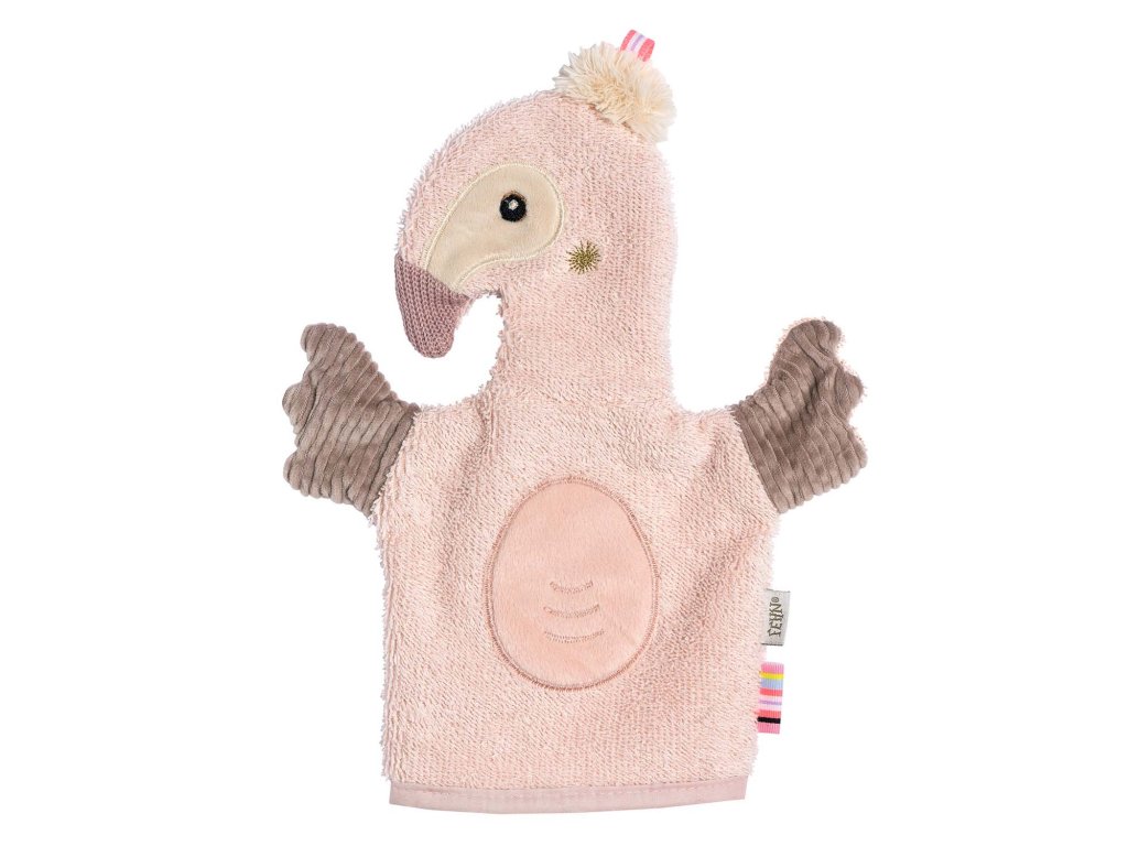 Táto roztomilá žinka s motívom plameniaka z kolekcie Lazy, Crazy & Pink zaručuje maximálnu zábavu pri kúpaní vďaka mäkkému materiálu a veselým detailom. Každodenné umývanie sa stane potešením pre každé dieťa. Žínku možno použiť nielen na kúpanie, ale aj ako bábiku - stačí ju nasadiť na ruku a plameniak okamžite ožije. Mäkké froté je mimoriadne šetrné k detskej pokožke a umýva jemne a s hravou ľahkosťou.