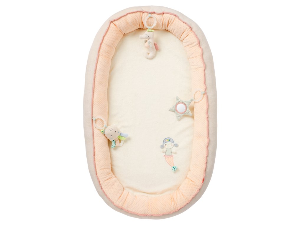 Vďaka obzvlášť mäkkému a polstrovanému okraju získa dieťa optimálne pohodlie a pocit ochrany a bezpečia. Ideálne na doma aj na cesty. Detské hniezdo v dizajne morskej panny je univerzálne a možno ho použiť ako postieľku, podložku do postieľky, podložku na maznanie alebo ako hniezdo na pohovke, či už doma alebo na návšteve u babičky a dedka.
