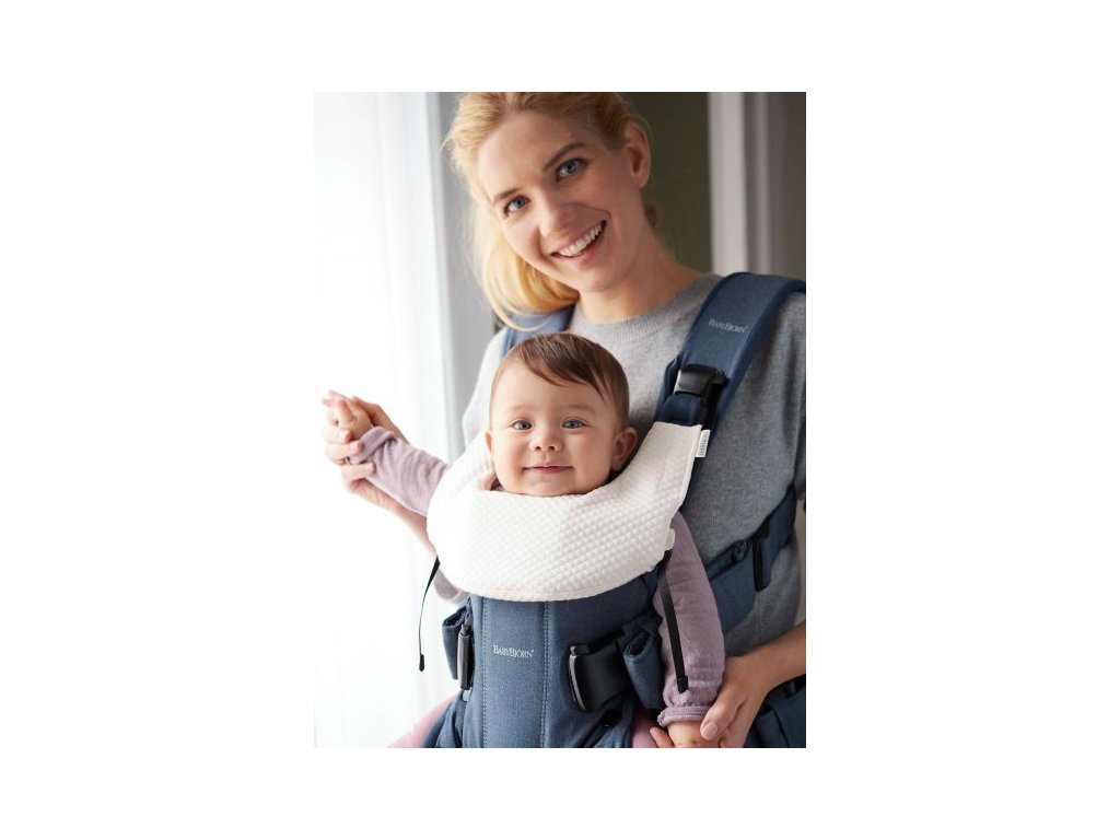 Špeciálny absorbčný a vodeodolný podbradník od BabyBjörnu chrání Váš nosič zvrchu, takže ho nemusíte tak často prať. Podbradník je mäkký a pro pokožku Vášho dieťaťa. Vhodný pre nosič typu One a One Air BabyBjörn.