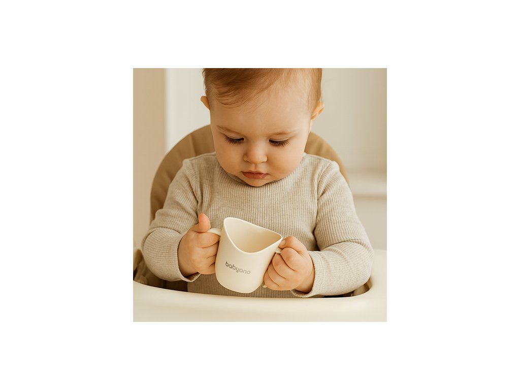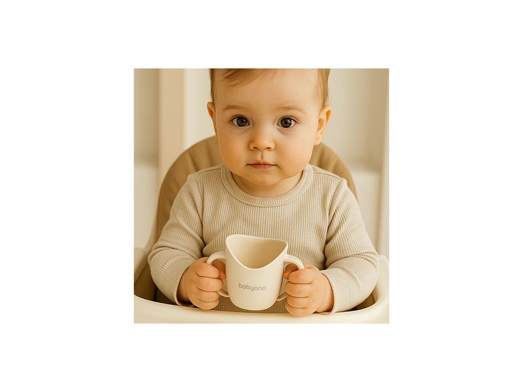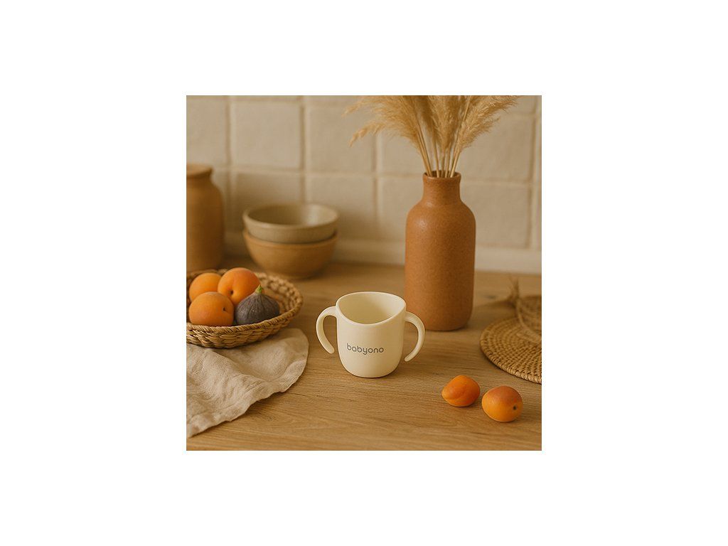 BABYONO Hrnček ergonomický s uškami 120 ml beige 6m+