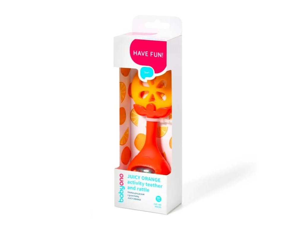 Toto originálne hryzátko Babyono bolo navrhnuté s ohľadom na potreby najmenších detí. Jeho tvar poskytuje pohodlné držanie pre malé detské ručičky. Upokojuje bolesti pri prerezávaní zúbkov, pretože elastický materiál s nerovnou štruktúrou dokonale masíruje ďasná dieťaťa. Vo vnútri sú malé guľky, ktoré hrkajú pri každom pohybe - povzbudzujú dieťa k cvičeniu a hre, čím stimulujú vývoj dieťaťa.