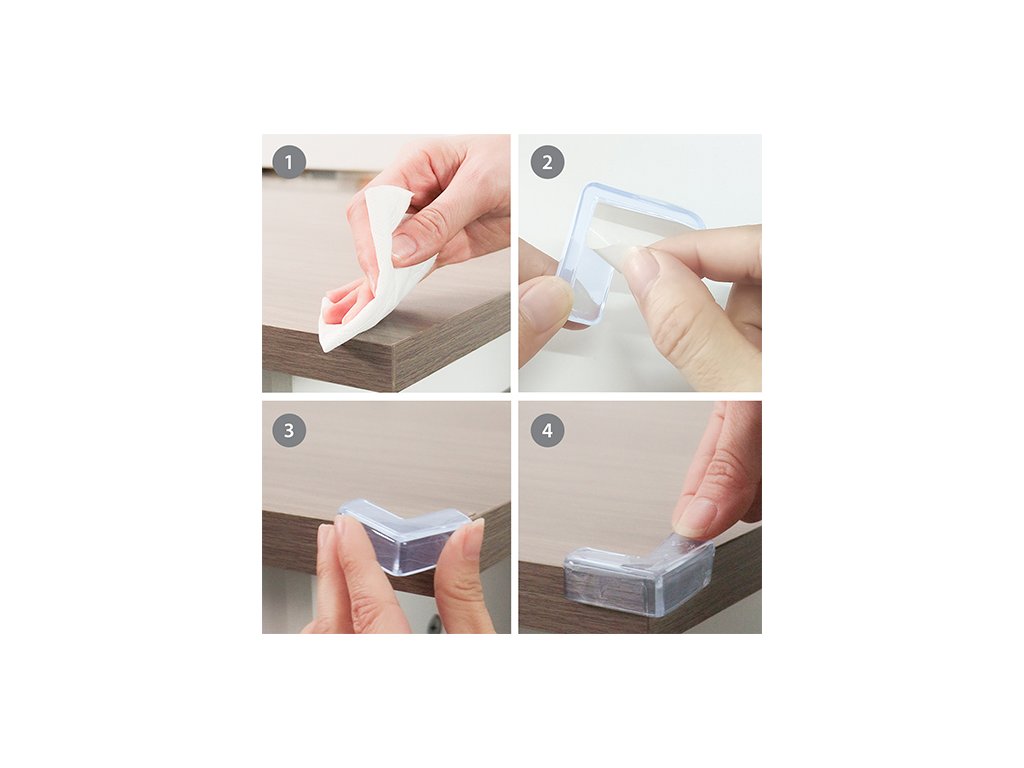 Ochrana rohov v tvare „L“ pomáha chrániť vaše dieťa pred bolestivými poraneniami spôsobenými ostrými hranami nábytku a iného vybavenia domácnosti. Umožňuje bezstarostné hranie a bezpečný priestor na rast. Ochranu rohov je možné pripevniť na akýkoľvek hladký a dôkladne očistený povrch – v závislosti od hrúbky aj na obidve strany rohu. Silná obojstranná páska 3M umožňuje rýchlu a jednoduchú inštaláciu. Transparentný dizajn sa ľahko prispôsobí rôznym farbám a štýlom nábytku vo vašej domácnosti.