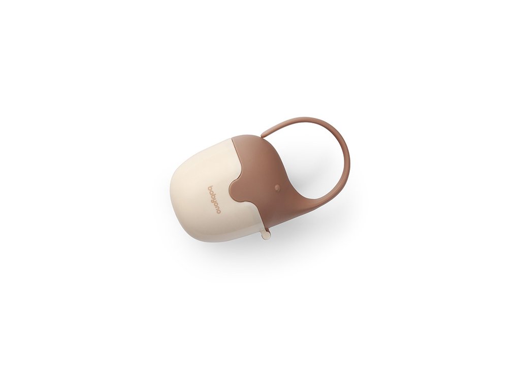 Táto nádobka v tvare slona slúži na prenášanie a uloženie cumlíka. Je nevyhnutná pre každú prechádzku a chráni cumlík pred stratou a znečistením. Vďaka flexibilnej rukoväti je možné nádobku zavesiť na rukoväť kočíka, autosedačky alebo tašky na kočík. Neobsahuje BPA.