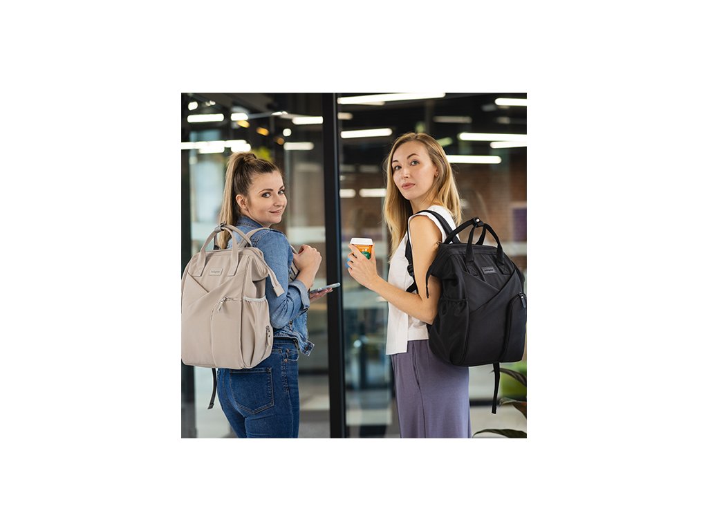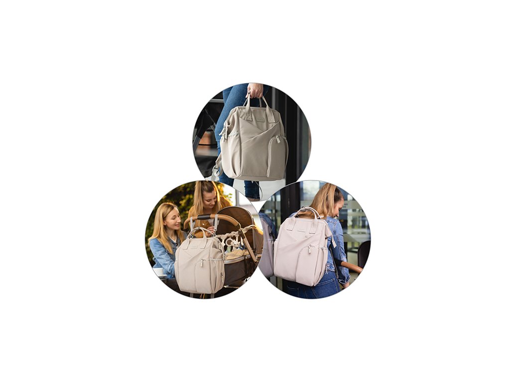 Moderný batoh pre rodičov v elegantnom štýle je dokonalým spoločníkom pre každodenné výzvy. Spája kompaktné rozmery s výnimočnou priestrannosťou a originálnym dizajnom. Ideálny pre milovníčky minimalizmu a prehľadnej organizácie. Vďaka priestrannosti sa doň zmestí všetko potrebné – plienky, fľaše, knihy, tablet aj drobnosti. Vo vnútri sa nachádza až 12 praktických vreciek, ktoré vám pomôžu udržať poriadok vo všetkom, čo potrebujete pre seba alebo bábätko.