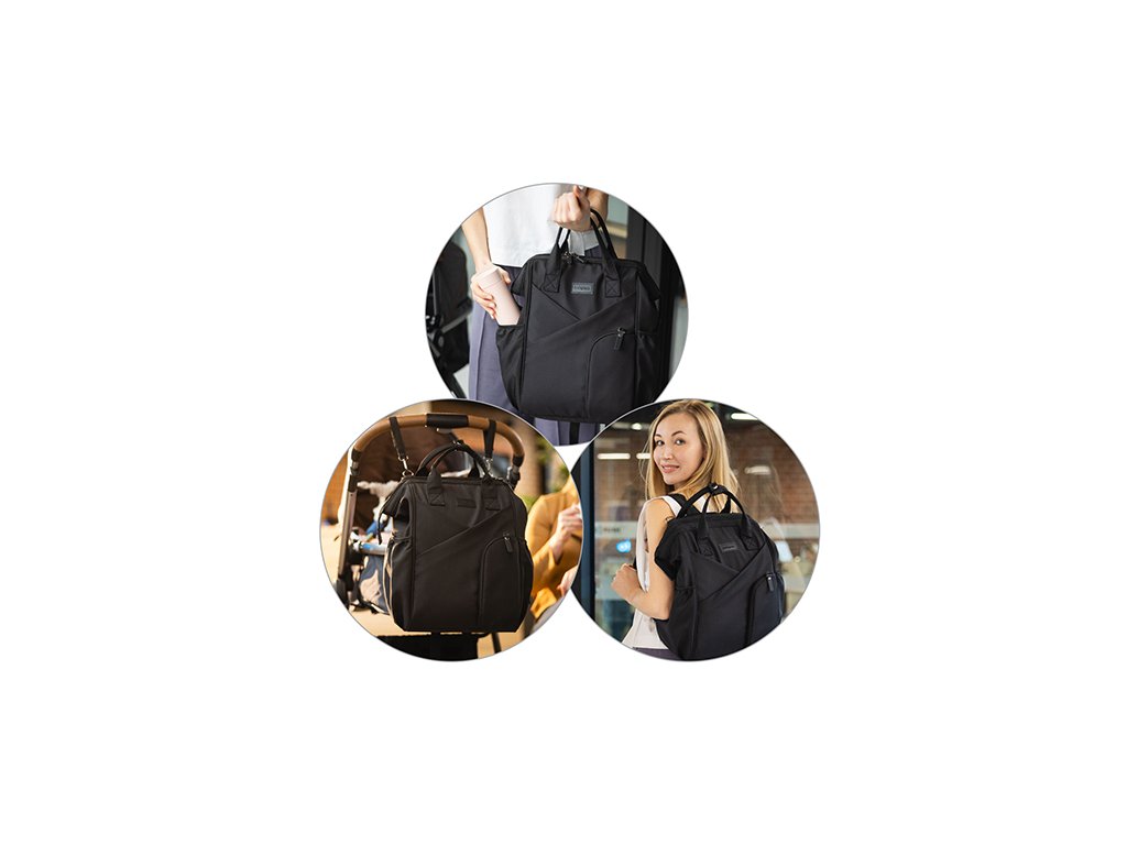 Moderný batoh pre rodičov v elegantnom štýle je dokonalým spoločníkom pre každodenné výzvy. Spája kompaktné rozmery s výnimočnou priestrannosťou a originálnym dizajnom. Ideálny pre milovníčky minimalizmu a prehľadnej organizácie. Vďaka priestrannosti sa doň zmestí všetko potrebné – plienky, fľaše, knihy, tablet aj drobnosti. Vo vnútri sa nachádza až 12 praktických vreciek, ktoré vám pomôžu udržať poriadok vo všetkom, čo potrebujete pre seba alebo bábätko.