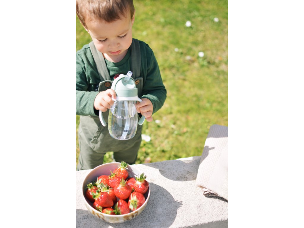 Hrnček so zaklapávacím silikónovým slamkou je ideálny pre použitie doma aj na cestách. Kombinácia posuvného viečka a mäkkej zaklapávacej slamky je zárukou bezpečného aj hygienického prenášania v taške. Ventil v slamke navyše bráni vyliatiu obsahu fľaštičky pri prevrhnutí aj keď viečko nie je zaklapnuté. Odnímateľné držadlá uľahčujú dieťaťu držanie hrnčeka.