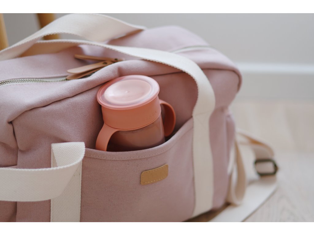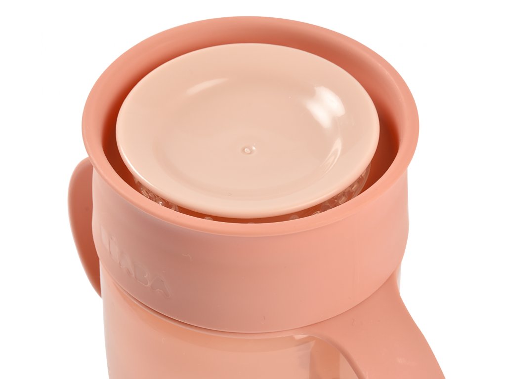 Originálny hrnček pre deti, ktoré sa učia piť z klasického hrnčeka. Membrána so systémom 360° umožňuje piť z ktoréhokoľvek miesta po obvode hrnčeka bez rizika rozliatia obsahu - tekutina tečie z hrnčeka iba vtedy, keď dieťa pritisne pery na okraj hrnčeka. Odnímateľné rukoväte uľahčujú držanie hrnčeka. Obsah hrnčeka pri prenášaní chráni odnímateľné viečko.