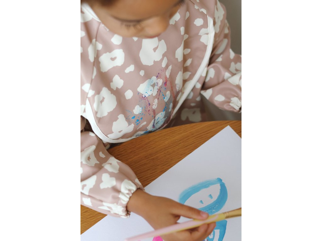 Podbradník s odnímateľnými rukávmi chráni detské oblečenie pri stolovaní aj výtvarných aktivitách. Rukávy je možné ľahko oddeliť aj znovu prirobiť. Rozkladacie vrecko na prednej strane pomáha zachytávať drobčeky aj kvapky pri detskom stolovaní, keď vrecko napr. pri maľovaní nepotrebujete, stačí ju nechať zloženú.