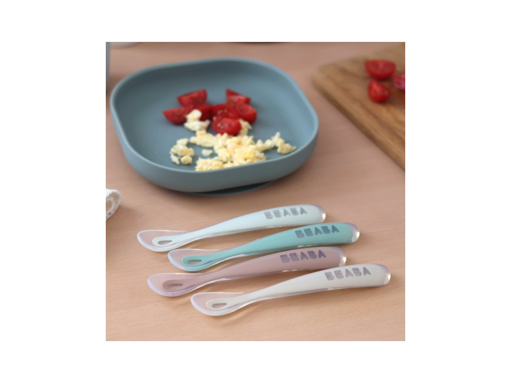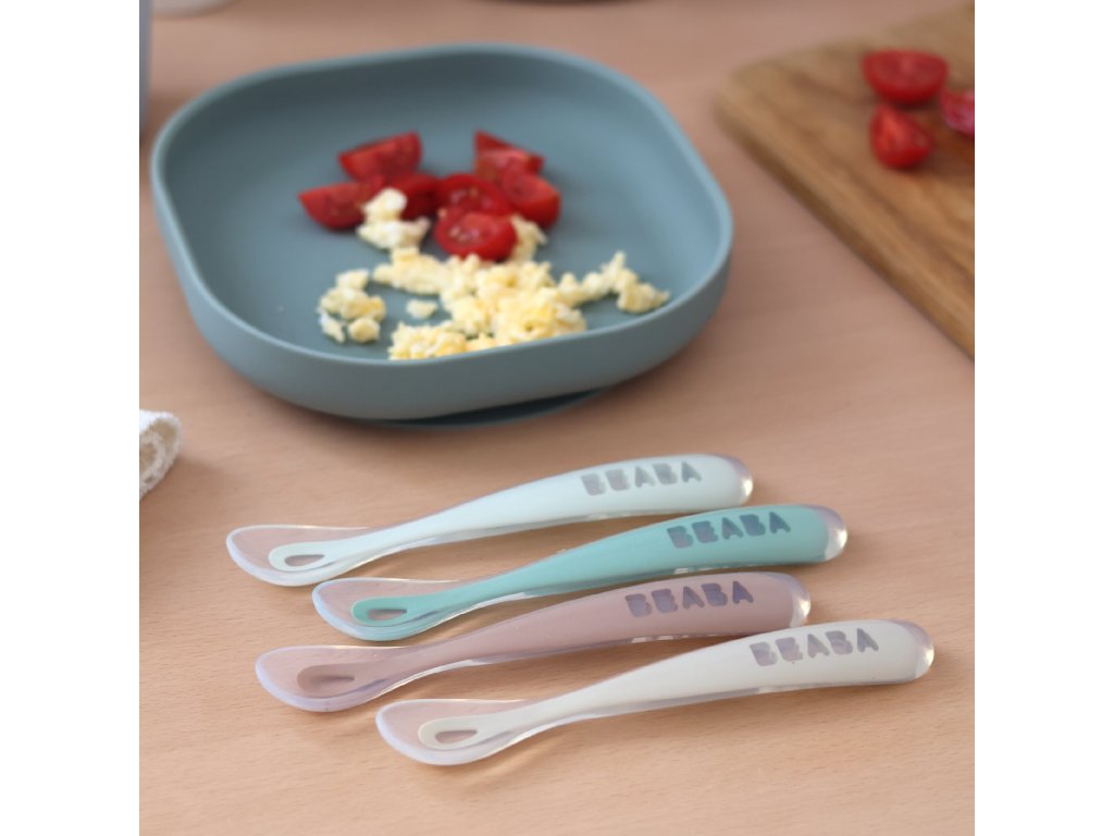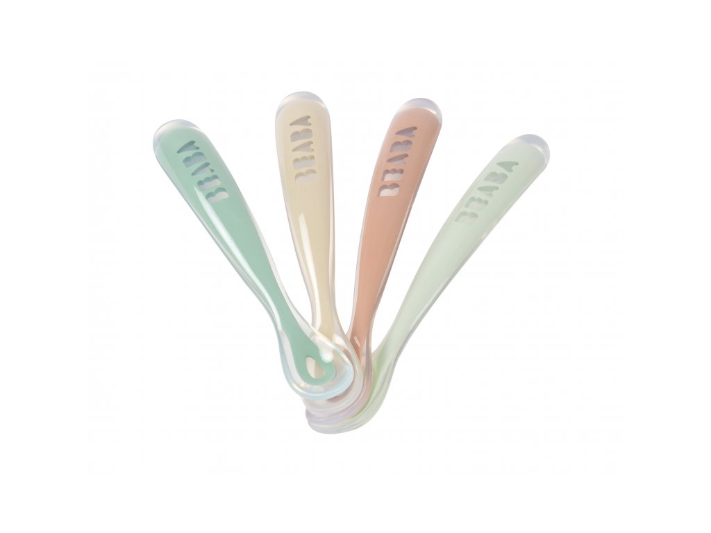 Silikónové lyžičky pre najmenších sú šetrné k citlivým detským ďasnám a navrhnuté pre hladký prechod z cumlíka na lyžičku. Dlhá rukoväť uľahčuje rodičovi naberanie z misky aj pohára bez zašpinenia rúk.