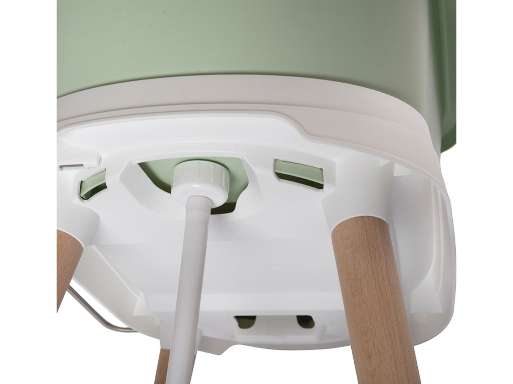 Veľmi stabilný vaňový stojan Sense má nohy vyrobené z lakovaného bukového dreva s certifikáciou FSC. To dodáva stojanu teplý moderný vzhľad. Je vybavený praktickými pomôckami; vpredu je pripevnený držiak na uteráky. Priestranná plastová polička poskytuje dostatok miesta napríklad na šampón, žinku, vodné hračky alebo kúpací gél. To znamená, že máte po ruke všetky potrebné veci, aby ste si s malým mohli v pokoji kúpanie užiť. Inovatívny systém upevnenia zaisťuje, že vaňu možno ľahko pripevniť k stojanu a rovnako ľahko sňať. Po kliknutí môžete svoje bábätko nerušene a bezpečne kúpať.