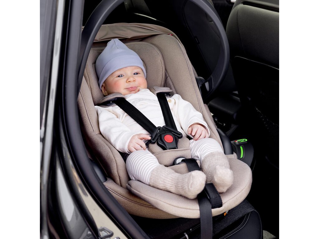 Autosedačku jednoducho prenesiete mimo vozidla. Rukoväť môžete ľahko ovládať iba jednou rukou. Funguje tiež ako poistka pri kolízii, pretože chráni vaše dieťa pred nárazom do interiéru auta.