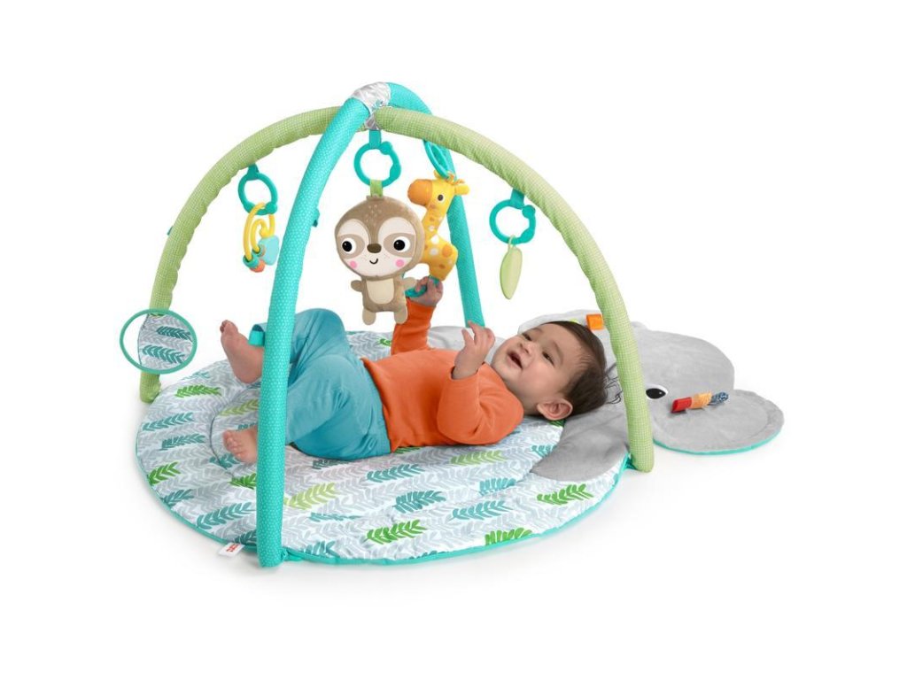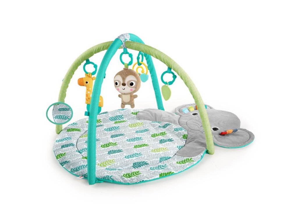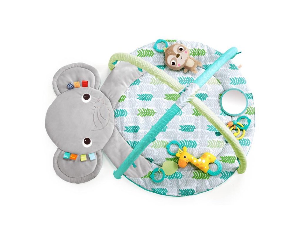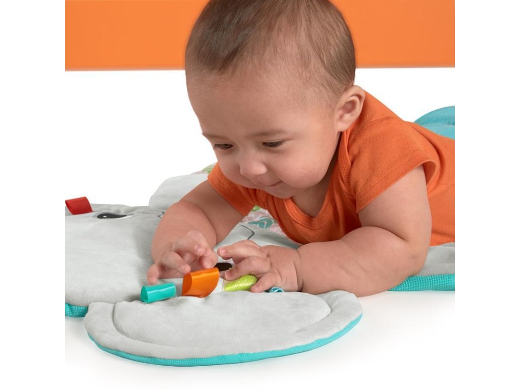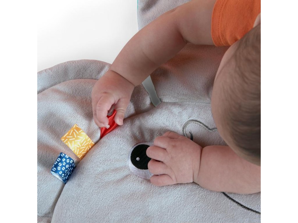 Tento sladký slon dá dieťaťu veľké objatie pri každom pritúlení sa. Hracia deka Bright Starts Hug-N-Cuddle Activity Gym vytvára najpohodlnejší a najkomfortnejší priestor pre dieťa, ktoré leží na brušku alebo chrbátiku. Ležte vedľa vášho drobčeka, keď sa pozerá a objavuje visiace hračky nad ním. Počas hry na brušku bude rád ťahať saténové stužky taggies, ktoré lemujú uši slona alebo si ho podmaní zrkadlo typu peek-a-boo. V akejkoľvek hracej pozícií bude mať váš malý objaviteľ chuť triasť, ťahať a stláčať 5 rôznych hračiek, ktoré sú súčasťou deky. Keď dieťa narastie, môžete odstrániť hrazdičku a premeniť slona na pohodlnú podložku na hranie a jemného, milého kamaráta, korý si zaslúži maznanie. Táto hracia deka vám a aj dieťaťu poskytne dostatok priestoru na hranie a pritúlenie aj v ďalšom období.