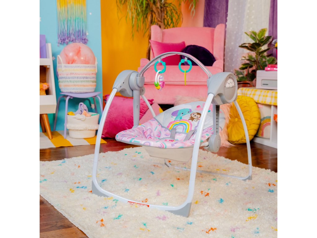- Prenosná hojdačka Bright Starts Pink Paradise má ľahký a skladací dizajn ideálny na skladovanie alebo cestovanie; ľahko prenosná na cestách
