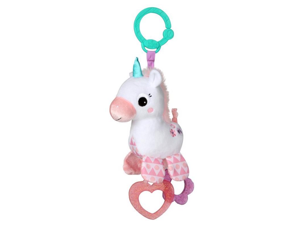 Každá malá princeznička potrebuje svojho čarovného jednorožca. Rozkošný Sparkle & Shine jednorožec od spoločnosti Bright Starts je plyšová hračka, s ktorou sa vaša princeznička môže hrať kdekoľvek a kedykoľvek! Jednorožec je vyzdobený dvomi hryzačkami v tvare srdiečka a kvietka, ktoré pomôžu dieťatku pri prerezávaní sa prvých zúbkov. Mäkká saténová hriva jednorožca zaručí hmatový zážitok pre dieťatko, ktorý ho zároveň bude upokojovať. Vďaka C- krúžku na pripojenie je hračka kompatibilná s väčšinou nosičov, kočíkov a produktov Bright Starts s dostupnou slučkou.