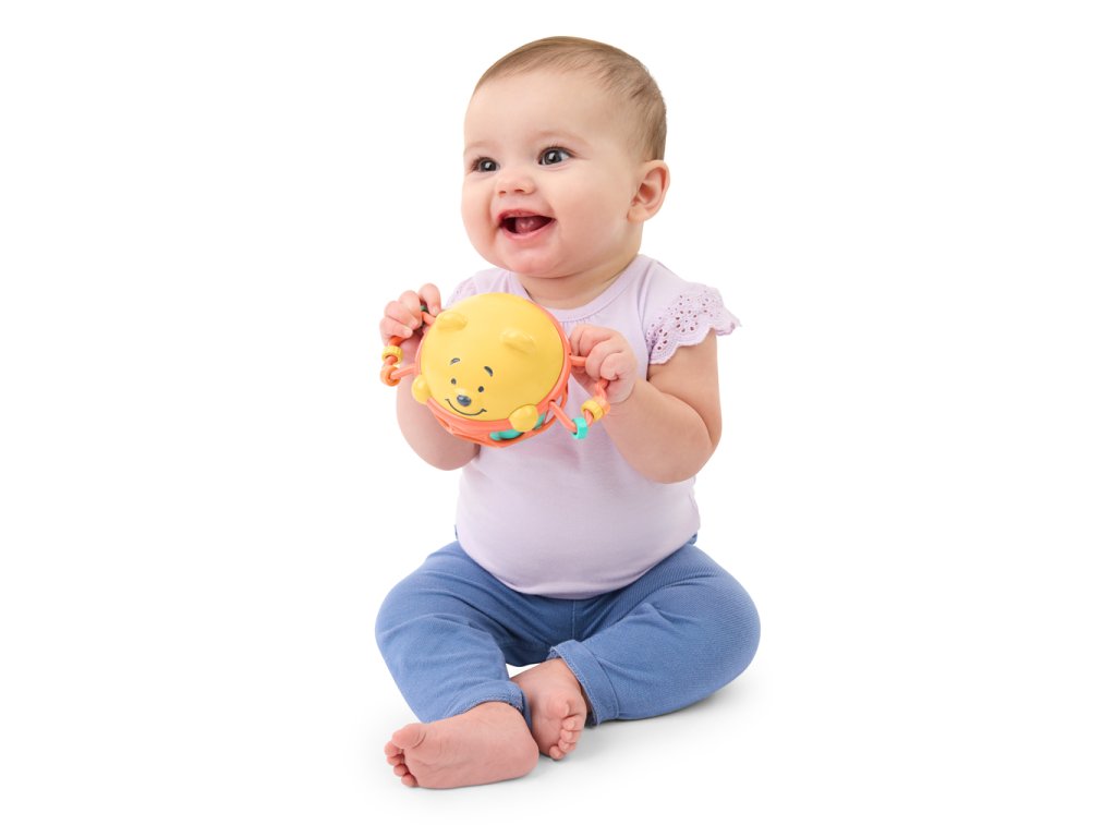 Rozžiarte každé hranie s jemne hrkajúcou hračkou s Mackom Pú od Bright Starts! Táto milá a farebná hrkálka je navrhnutá špeciálne pre malé rúčky a zvedavé detské zmysly – ideálna už od narodenia. Unikátny tvar Oball je pružný, ohybný a ľahko uchopiteľný, vďaka čomu si dieťatko hravou formou rozvíja jemnú motoriku. Pri zatrasení sa spustí jemné hrkanie, ktoré stimuluje sluch a farebné korálky na bokoch povzbudzujú hmatové vnímanie. Ľahká, prenosná a zábavná hrkálka s motívom milovaného Macka Pú je ideálnym spoločníkom na doma aj na cesty.