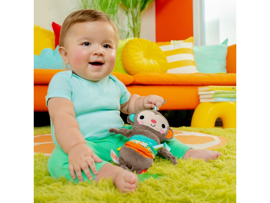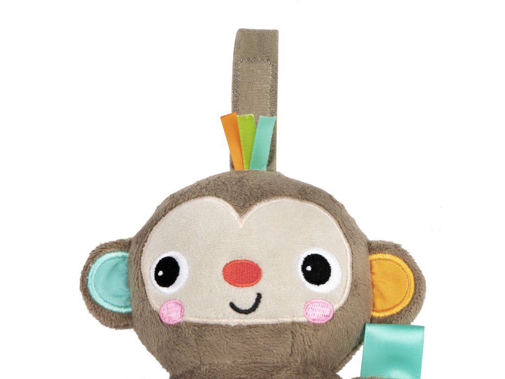Tento plyšový opičí kamarát má priložený odkaz, že sa bude zdržiavať všade tam, kam sa vy alebo dieťa vyberiete. Hračka sa ľahko pripevňuje na kočíky, autosedačky, nosiče a ďalšie zariadenia, aby zaujala dieťa a prinútila ho skúmať a rozvíjať tak zábavu a zručnosti počas cestovania.