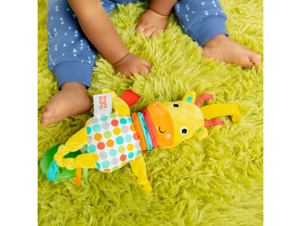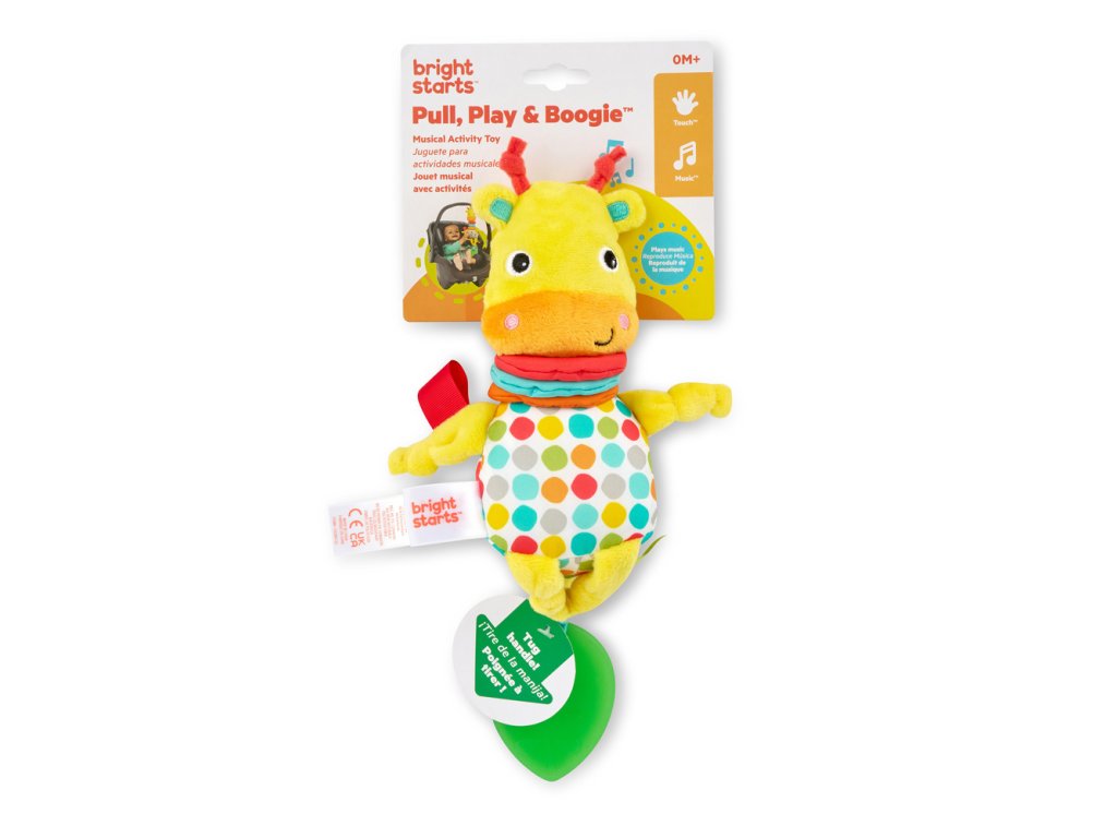 Hračka Bright Starts Pull, Play & Boogie prinesie radosť vám aj dieťaťu, ktoré sa učí a hrá naraz! Jemné potiahnutie za list spôsobí, že sa žirafí kamarát začne naťahovať. Sledujte, ako sa jej telo rozťahuje a pomaly sťahuje v rytme 60-sekundových veselých melódií. S touto hudobnou naťahovacou hračkou podporíte rozvoj jemnej motoriky, vizuálneho zapojenia a príčin a následkov. Dieťatko si zamiluje mäkkú rozmanitosť látok, ktoré umožňujú hmatové skúmanie, pestré farby žirafy a doplnkov a chichotanie, ktoré táto hračka prináša!