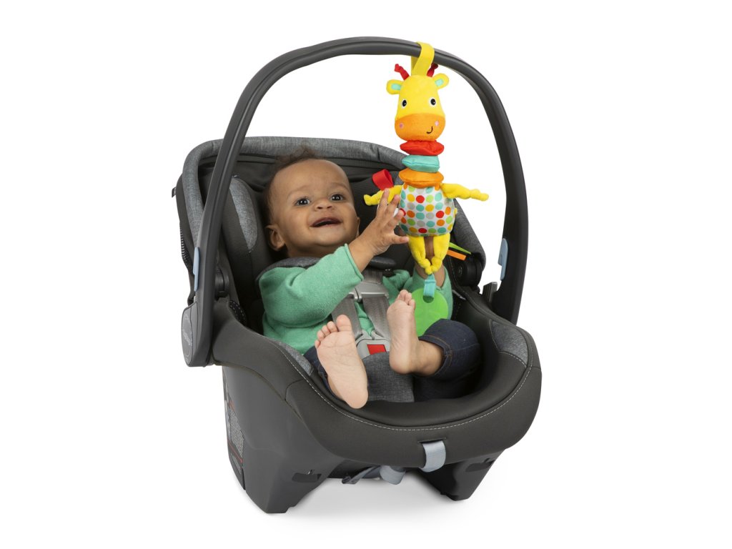 - Ľahko sa pripevňuje na kočíky, autosedačky alebo nosiče; udržiava dieťa v pozornosti, nech je kdekoľvek, a zároveň podporuje kľúčové vývojové míľniky.
