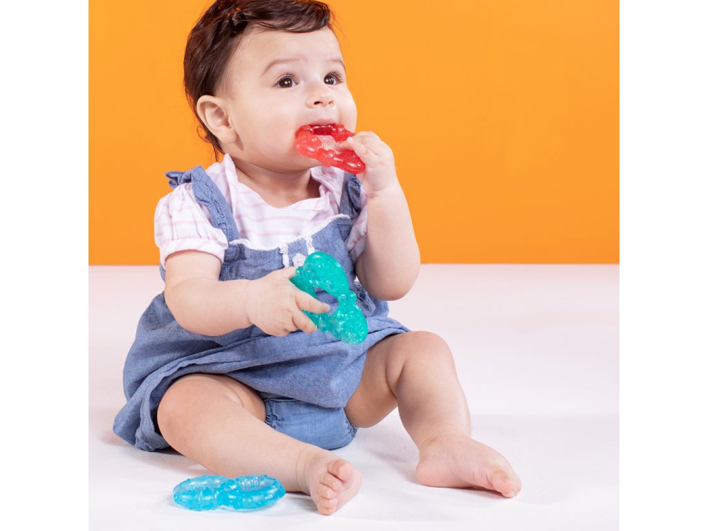 Uľavte svojmu bábätku počas prerezávania zúbkov s chladivými hryzačkami od Bright Starts. Každý z troch farebných krúžkov je naplnený čistou vodou, ktorú môžete schladiť v chladničke pre extra úľavu. Hryzačky majú rôzne textúry a sú navrhnuté pre jednoduché uchopenie malými ručičkami, čo podporuje rozvoj jemnej motoriky a senzorickej stimulácie. Dieťatko ohúria aj žiarivé farby a hryzačky nebsahujú BPA, takže sú mimoriadne bezpečné pre vaše dieťatko.