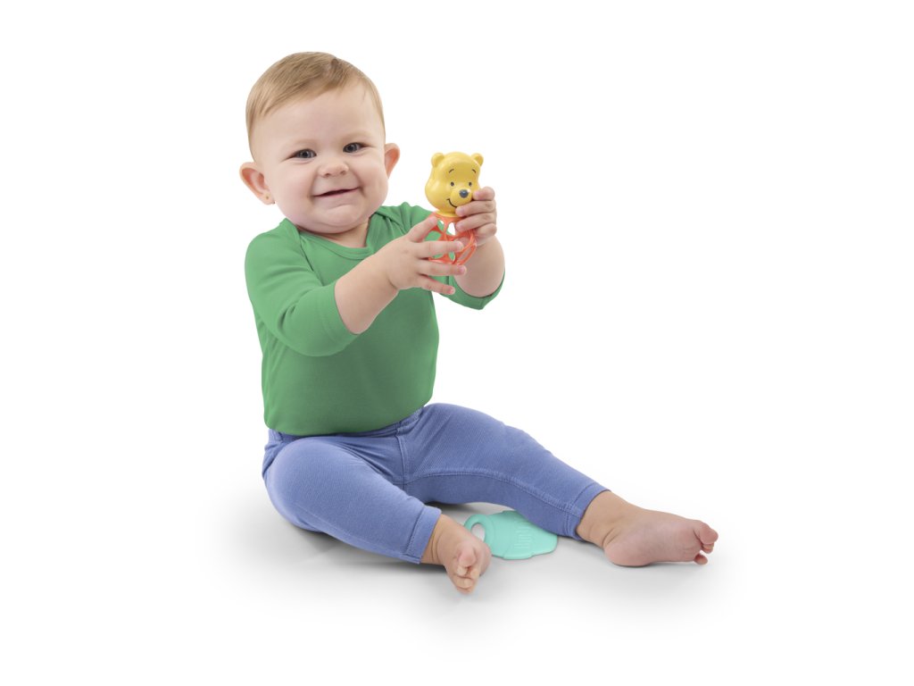 BRIGHT STARTS Hryzačka s hrkálkou Winnie the Pooh™ Hunny & Shake™ 2ks, 0m+