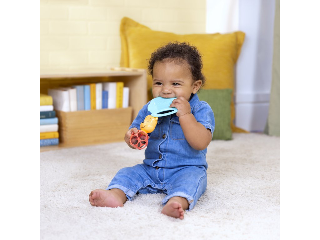 - Hrkálka Oball - ľahká, pružná a ideálna pre drobné ručičky – podporuje jemnú motoriku, sluchové vnímanie a hmatové objavovanie.
