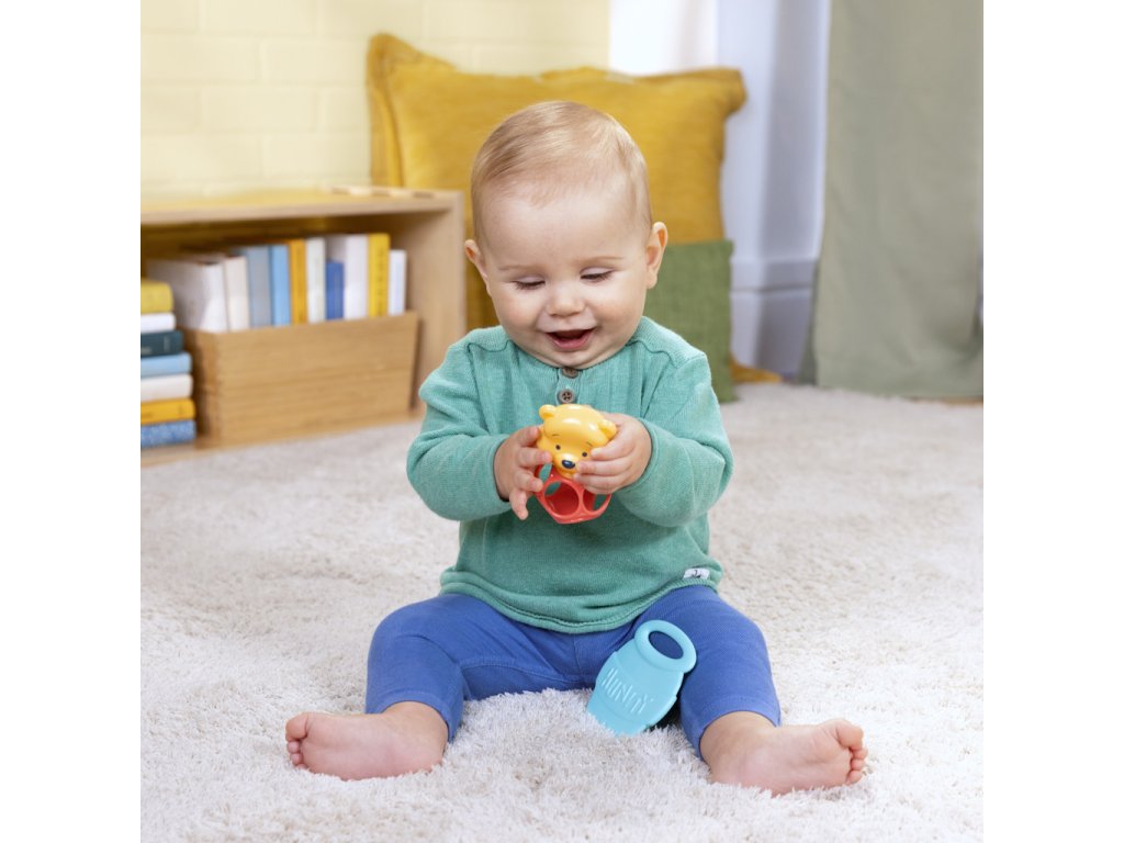 Rozžiarte čas hrania najmenších s touto roztomilou sadou Disney Baby Winnie the Pooh! Sada 2v1 obsahuje pružnú, ľahko uchopiteľnú hrkálku typu Oball s motívom milovaného Macka Pú a hryzačku v tvare medového hrnčeka pre úľavu od bolesti ďasien pri prerezávaní sa prvých zúbkov. Prineste do hry kúzlo rozprávky s veselými farbami a známymi postavičkami. Perfektný darček pre bábätká na narodeniny, Vianoce alebo ako darček na baby shower.