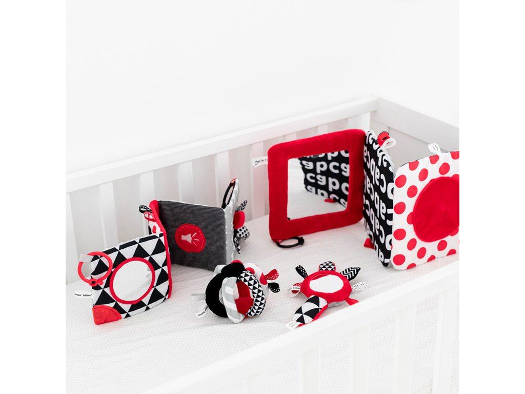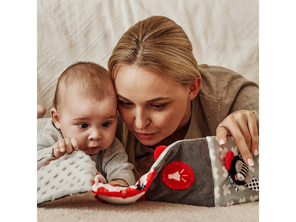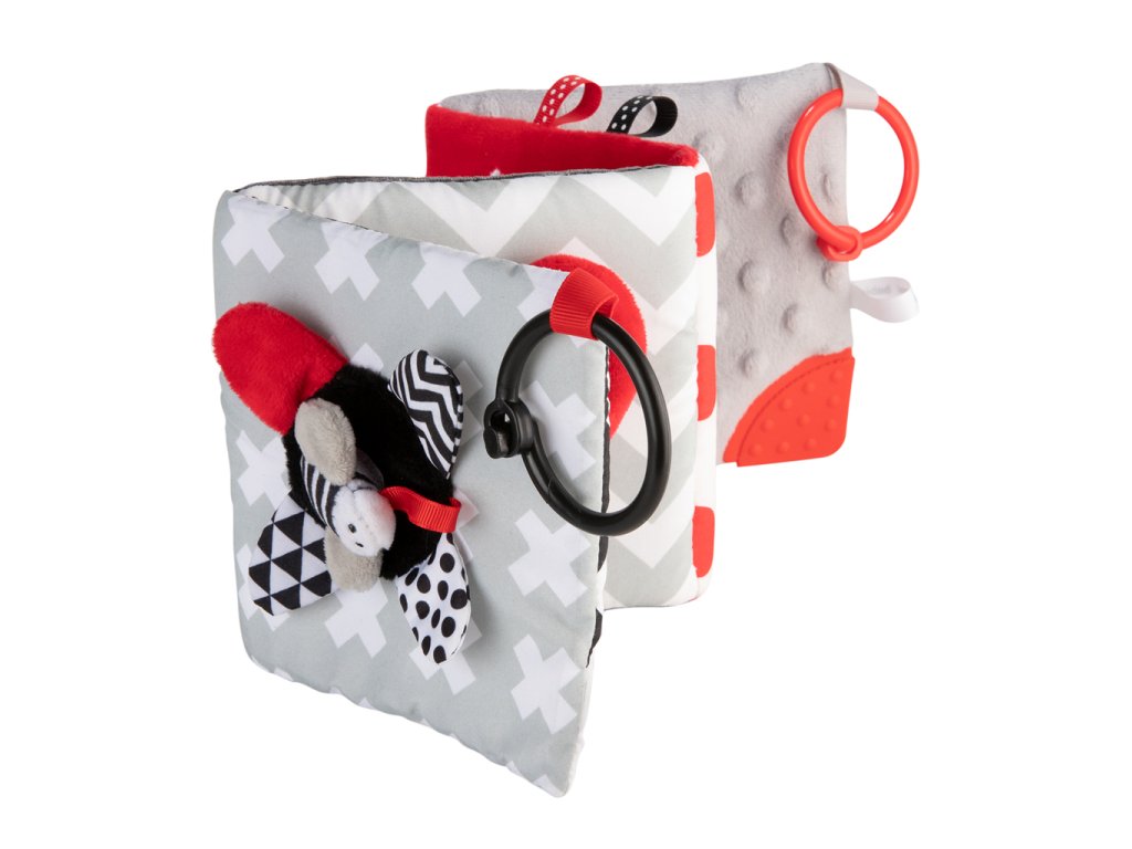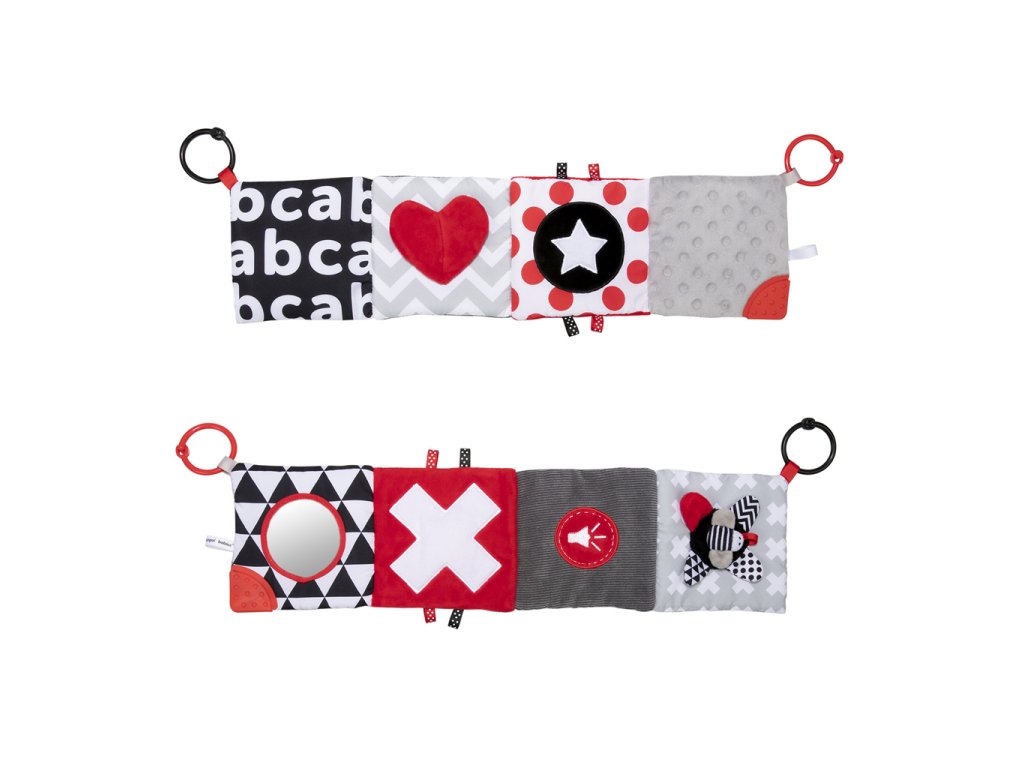 Kontrastná edukatívna knižka SENSORY je ideálnym pomocníkom pre prvý rok života bábätka. Hračku je možné jednoducho upevniť vďaka klipom na požadované miesto - kočík, postieľku alebo autosedačku. Praktický doplnok disponuje šuštiacimi a pískacími elementmi, zrkadielkom, hrkálkou, hryzátkom a odnímateľnými prvkami. Senzorické farby a rôzne textúry materiálov stimulujú rozvoj zmyslov dieťaťa.
