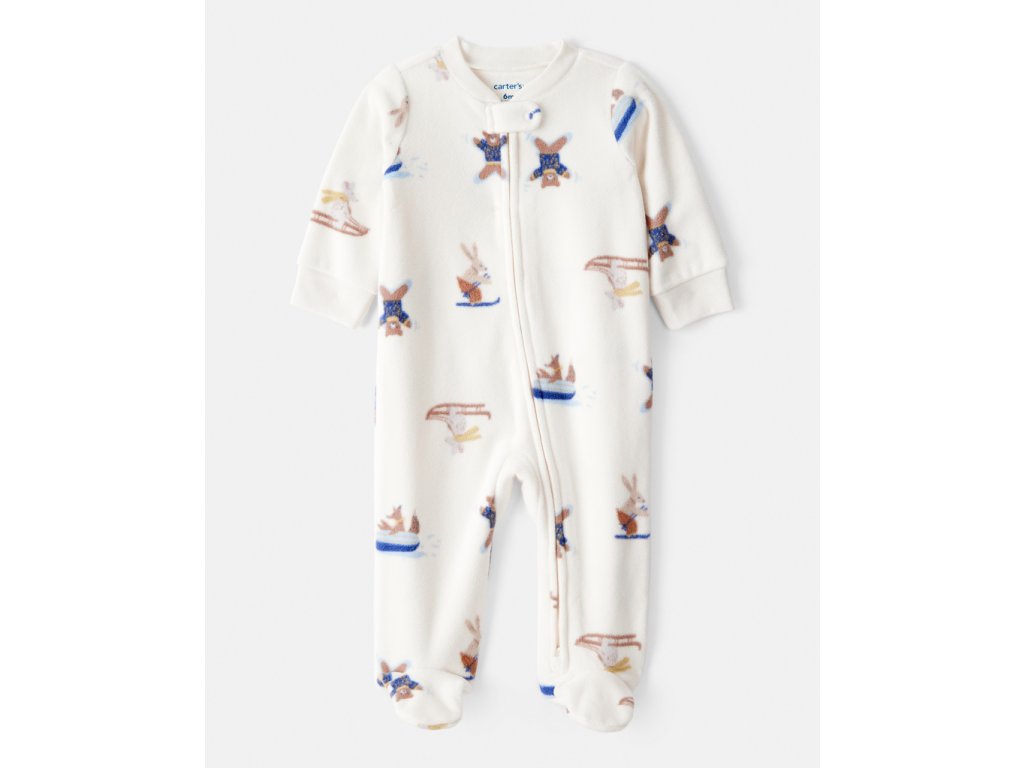 CARTER'S Overal na zips fleece Sleep & Play ivory Animal ski chlapec 9m/veľ.74