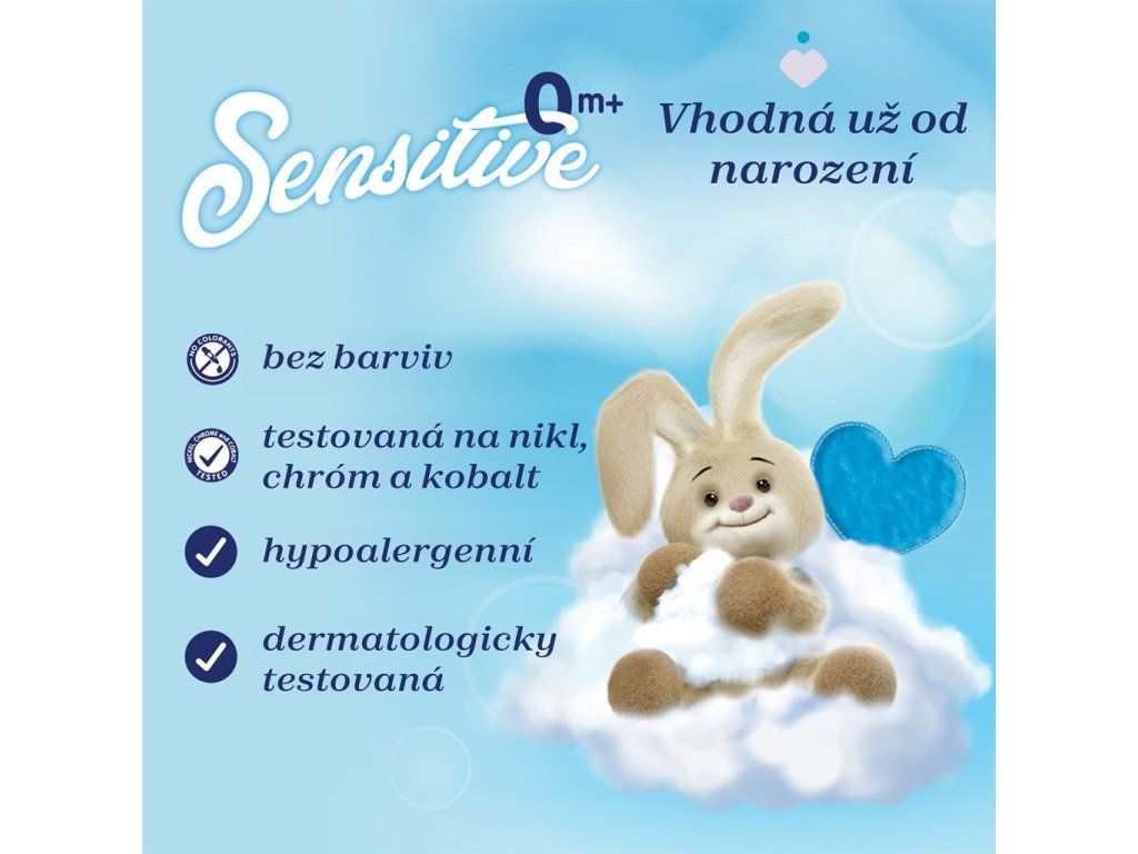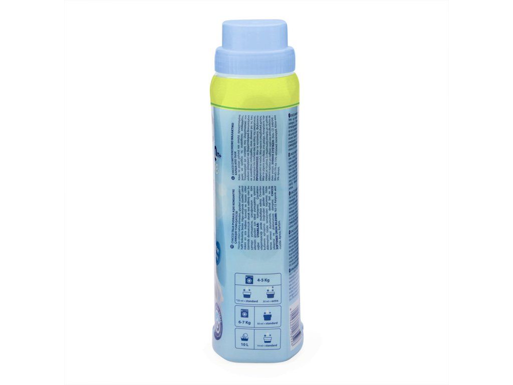 Hypoalergénne, neobsahuje farbivá a je dermatologicky testované na citlivej pokožke. Koncentrované zloženie s „zápach odstraňujúcou“ technológiou, ktorá zanecháva oblečenie čisté a jemne navoňané.