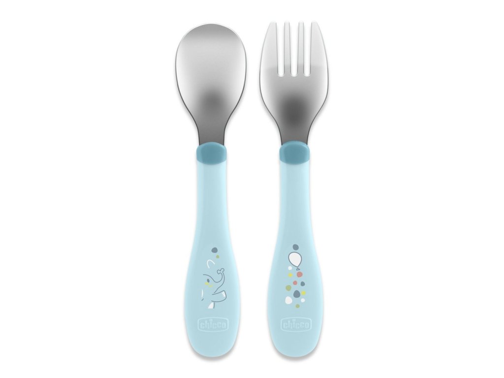 CHICCO Lyžička a vidlička nerez - teal, 18m+
