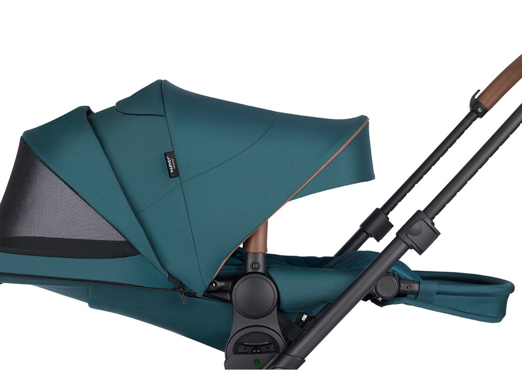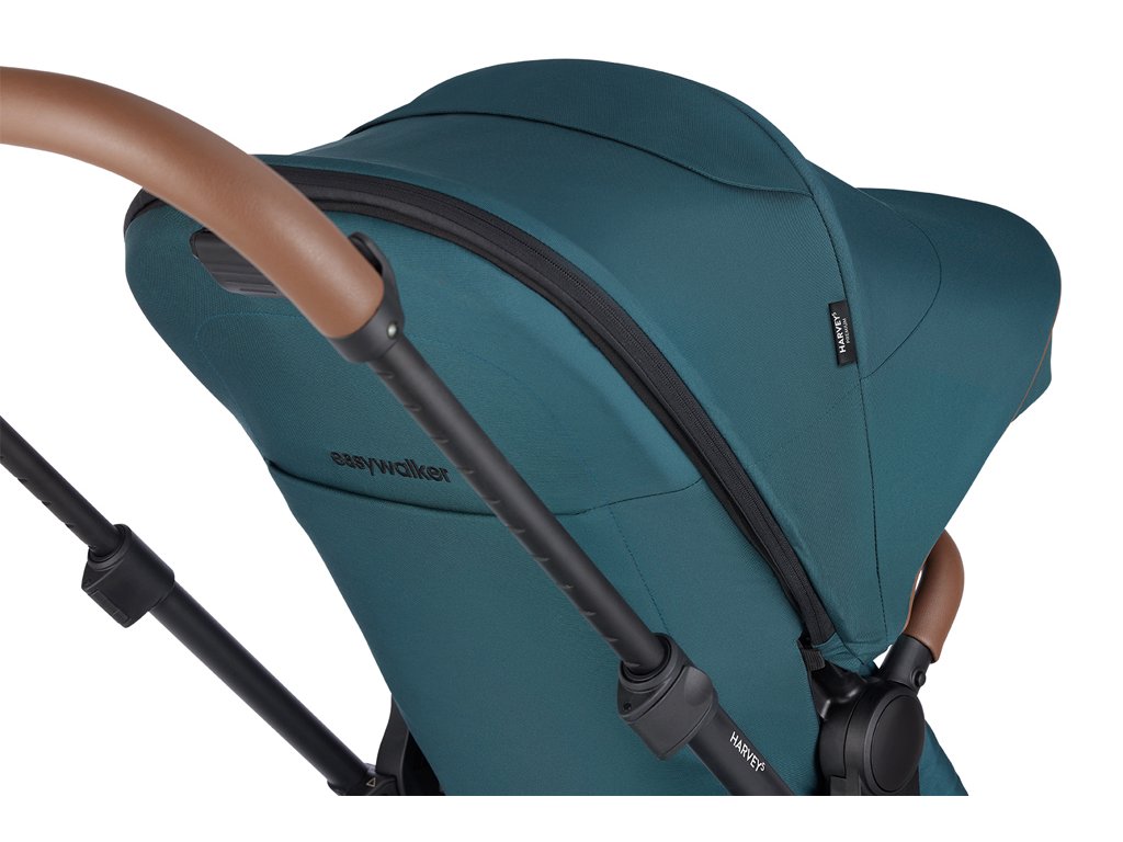 Bez ohľadu na počasie sa nemusíte obávať. Vaše dieťa zostane v tieni alebo pekne v suchu vďaka extra veľkej strieške Harvey s okienkom a štýlovým koženým detailom, ktoré poskytujú UPF 50 ochranu pred slnkom a je vodoodpudivá.
