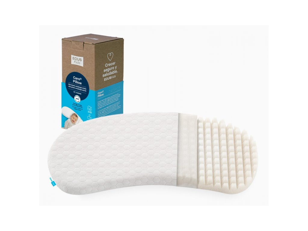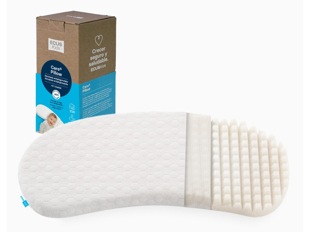 Detský mini vankúš Ecus Kids Care pomáha predchádzať splošteniu hlavičky (plagiocefálii) u dojčiat. Znižuje tlak o 40% viac ako iné vankúše a nemá stredový otvor, takže chráni dieťa bez ohľadu na polohu jeho hlavy.