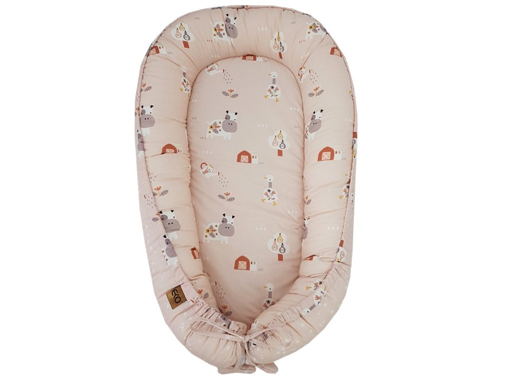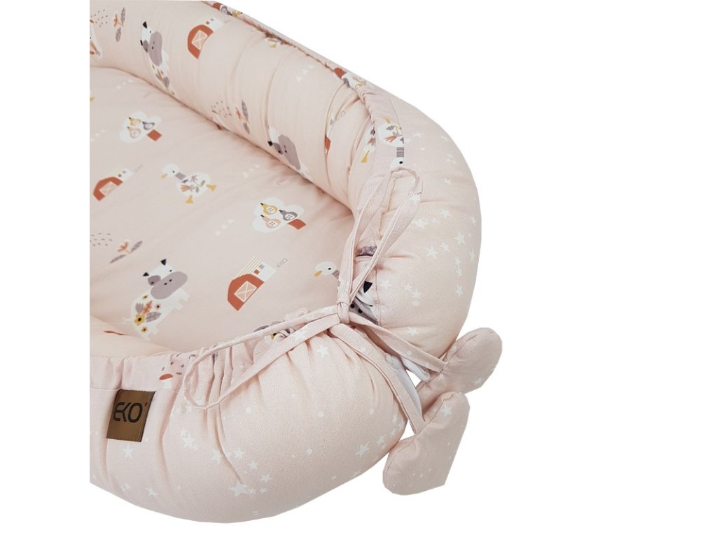 EKO Hniezdo pre bábätko obojstranné bavlnené My farm Stars Powder pink 90x60 cm