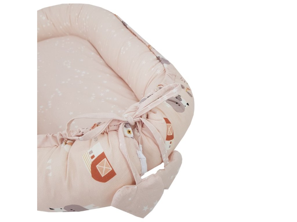Multifunkčné hniezdo obojstranné pre dieťa s okúzľujúcim vzhľadom poskytuje bezpečnosť a pohodlie pre spiace deti. Skvelá alternatíva k tradičným perinkám a zavinovačkám. Praktickosť hniezda znamená, že môže byť použitý aj ako podložka na hranie. Hniezdo má vysoké okraje, ktoré uľahčujú položenie dieťaťa na boku, čo je dôležité najmä, keď dieťa má reflux.