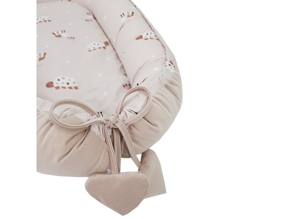 Multifunkčné hniezdo pre dieťa s okúzľujúcim vzhľadom poskytuje bezpečnosť a pohodlie pre spiace deti. Skvelá alternatíva k tradičným perinkám a zavinovačkám. Praktickosť hniezda znamená, že môže byť použitý aj ako podložka na hranie. Hniezdo má vysoké okraje, ktoré uľahčujú položenie dieťaťa na boku, čo je dôležité najmä, keď dieťa má reflux.