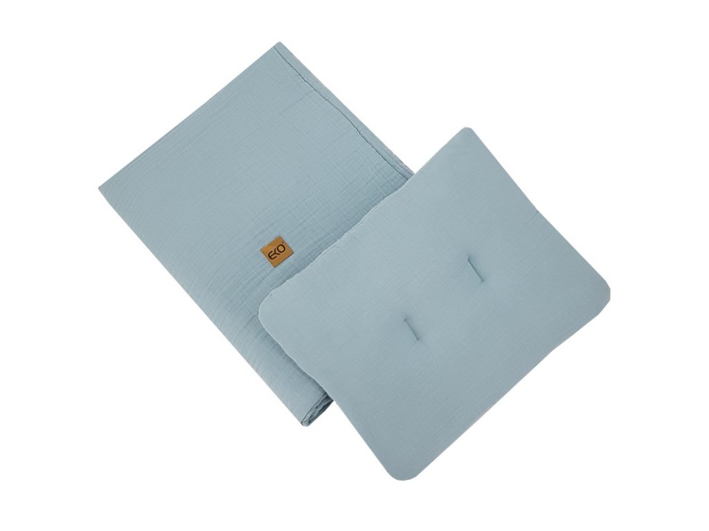 EKO Sada do postieľky 2-dielna mušelínová Blue 30x40 cm, 75x100 cm