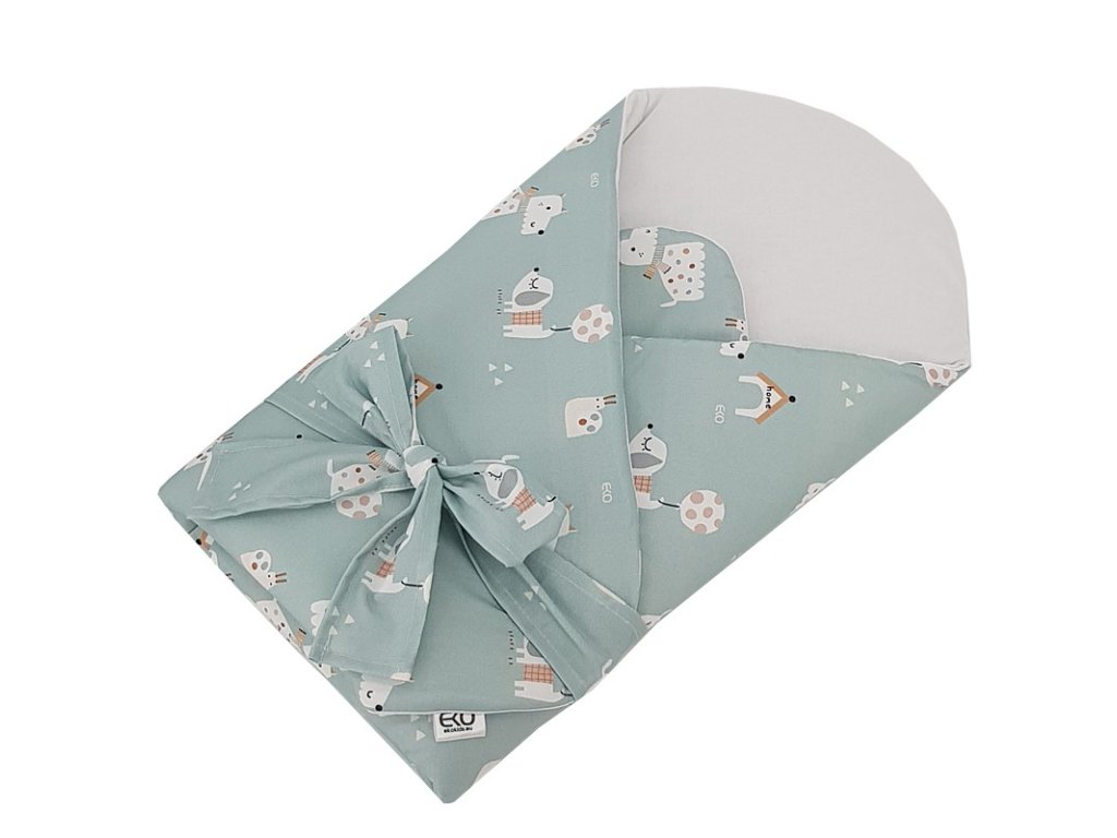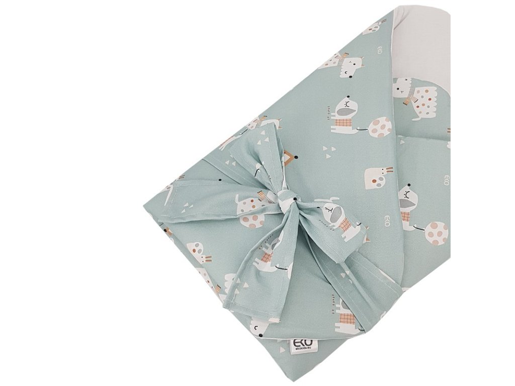 EKO Zavinovačka bavlnená s kokosovou vyberateľnou vložkou a mašľou Dogs Mint 75x75 cm