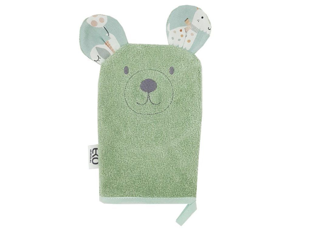 EKO Žinka bavlnená s uškami Bear Olive green 20x15 cm