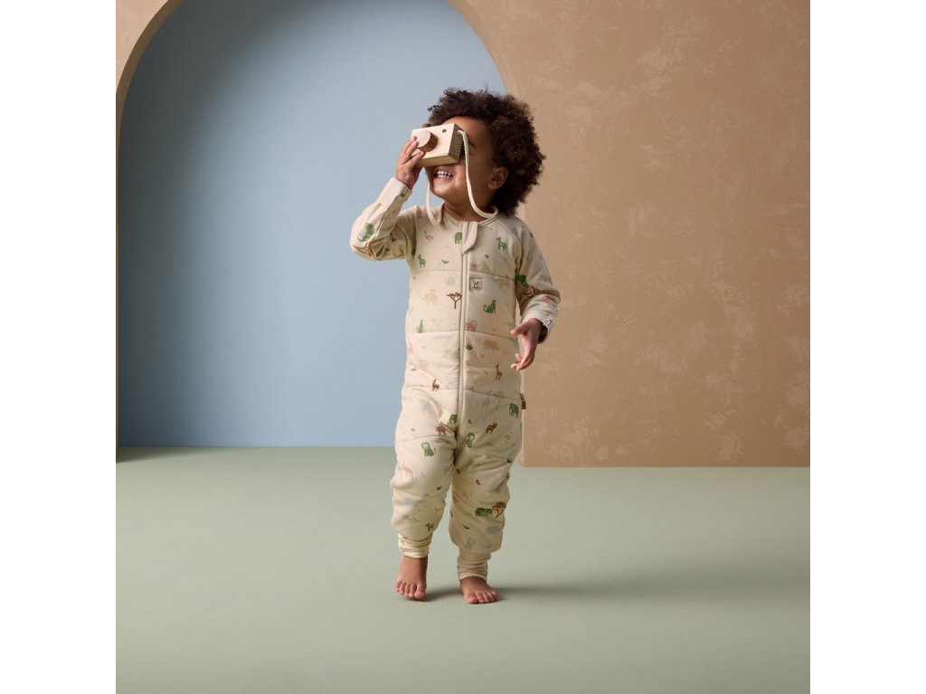 Overal Onesie je alternatívou spacieho vaku s označením TOG, ktorá je určená na nosenie samostatne počas spánku. Sú ideálnou voľbou pre batoľatá, ktoré prechádzajú do veľkej postele, spáčov, deti, ktoré odkopávajú prikrývky alebo malé hviezdičky, ktorým sa nepáči obmedzenie spacieho vaku. Spací vak je vyrobený z organickej bavlny s certifikátom GOTS, ktorá je netoxická a šetrná k podráždenej pokožke a je ňou aj vyplnený. Strečový materiál umožňuje vášmu dieťatku voľný pohyb a pohodlie pri spánku. Trojcestný potvrdzovací zips je užitočný pri nočných výmenách plienok alebo cestách na toaletu a manžety na nohy dodávajú extra teplo malým prstom.