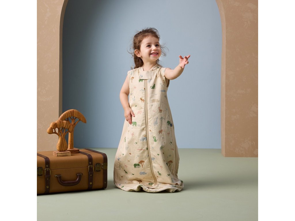 Vak na spanie Sheeting 1 TOG je ideálny na udržanie chladu a pohodlia dieťaťa v teplých miestnostiach s teplotou 21-24 °C. Hodnota TOG znamená, že pri používaní tohto výrobku nie sú potrebné ďalšie prikrývky v postieľke, čo z neho robí možnosť bezpečného spánku. Rodičia si môžu byť istí, že priedušné organické prírodné vlákna pomáhajú regulovať teplotu dieťaťa a zabraňujú prehriatiu. Rodičia sa môžu riadiť izbovým teplomerom ZDARMA a príručkou What to Wear (Čo si obliecť), ktoré sú súčasťou výrobku, a vhodne pod ne navrstvovať vrstvy, aby ich dieťa zostalo v teple.