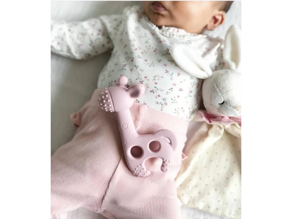 Hryzátko s rôznorodými textúrami v tvare žirafy je vyrobené z jemného silikónu príjemného na dotyk. Hryzátko uľaví citlivým detským ďasnám pri prerezávaní prvých zúbkov. Jeho tvar umožňuje ľahké držanie malými detskými ručičkami.