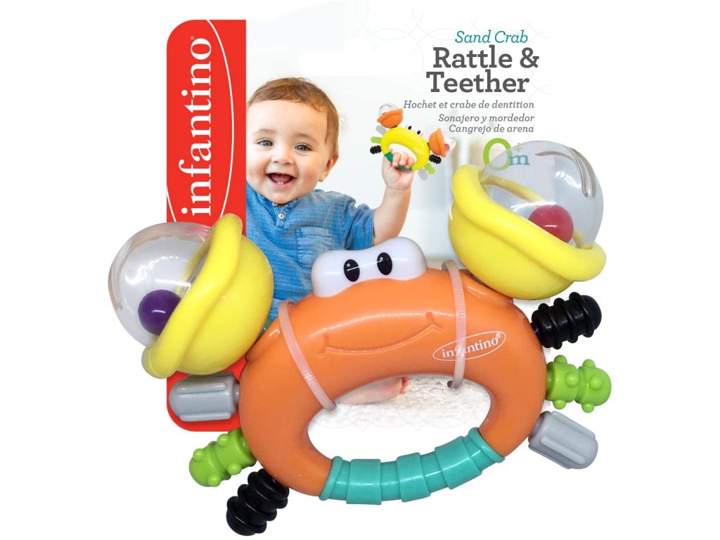 Bezpečná hrkálka a hryzátko dieťa zabaví aj uľaví jeho citlivým ďasnám pri prerezávaní zúbkov. Rôznorodé textúry podnecujú dieťa k skúmaniu rukami aj ústami. Tvar hračky umožňuje ľahké uchopenie detskými ručičkami.