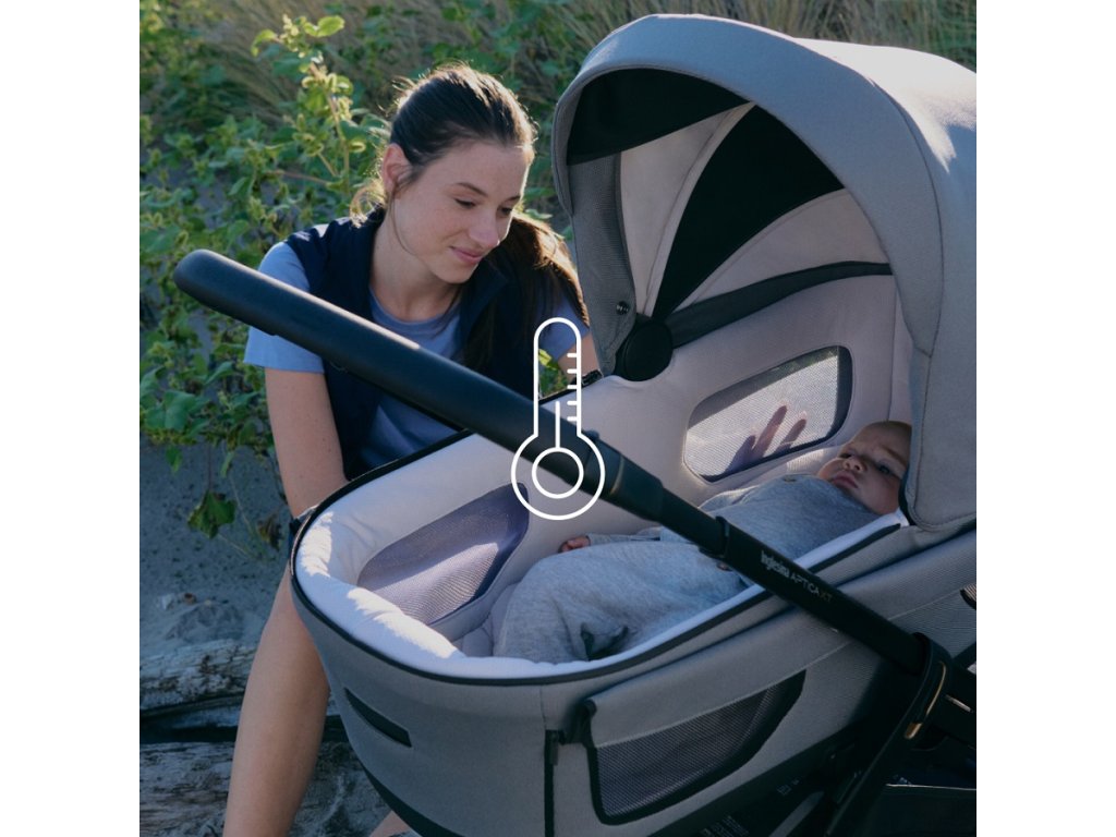 Vanička kočíka vo veľkosti XXL 79x37cm je priestranná a veľmi ľahká, pričom je navrhnutá v súlade s najnovšími bezpečnostnými normami a vďaka špeciálne tvarovanej veľmi pevnej škrupine s absorbérmi nárazu zaisťuje vysokú úroveň ochrany dieťatka. Po inštalácii Auto Kit (voliteľné príslušenstvo) je schválená pre použitie v aute. Nová je tiež dečka, ktorá je dvojpolohová a veľmi uľahčuje manipuláciu s dieťaťom pri jeho vkladaní či vyberaní z a do kočíka. Dno vaničky je chránené sieťou prepojenou s vnútorným poťahom. Nad ním je dvojitý matrac obsahujúci Welcome PadTM, ktorý možno, až dieťa povyrastie (3-4 mesiac) odňať. Vanička je plne ventilovaná sieťou v búdke, 5-timi okienkami na čele i bokoch vaničky aj otvormi na dne, ktoré je možné uzavrieť.
